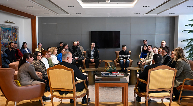 Çanakkale Belediye Başkanı Muharrem Erkek, 10 Ocak Çalışan Gazeteciler Günü öncesinde Belediyenin Basın, Yayın ve Halkla İlişkiler Müdürlüğünde görev yapan çalışanlarla başkanlık makamında bir araya geldi.