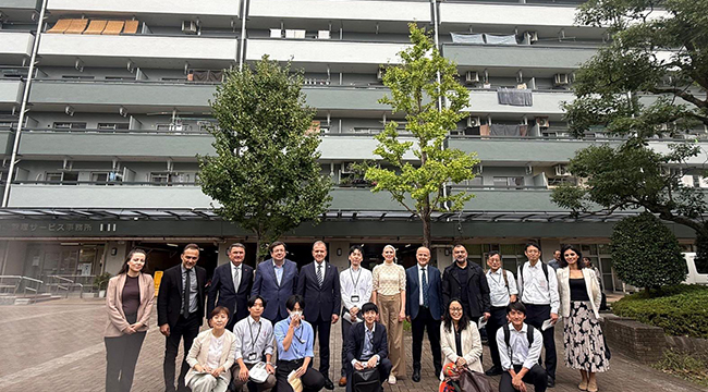 Heyete, Japonya- İtabashi Belediyesi tarafından yürütülen “Depreme Dayanıklı Yenileme Teşvik Planı” hakkında bilgiler verilirken çalışmaların uygulamadaki örneklerini yerinde gözlemlemek amacıyla Takashimadaira Konut Kompleksi de ziyaret edildi.