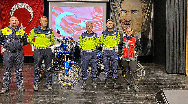 EZİNE'DE MOTOSİKLET SÜRÜCÜLERİNE TRAFİK EĞİTİMİ VERİLDİ