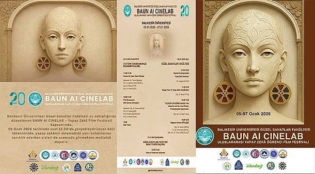 Balıkesir Üniversitesi Güzel Sanatlar Fakültesi ev sahipliğinde düzenlenen BAUN AI CINELAB – Uluslararası Yapay Zekâ Öğrenci Film Festivali, 05–07 Ocak 2026 tarihleri arasında Balıkesir’de gerçekleştiriliyor.